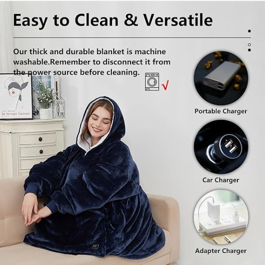 Made with ultra-soft insulated fleece and a plush sherpa interior, this heated blanket hoodie wraps you in warmth the moment you put it on. The gentle heating layer feels like a warm hug, keeping you cozy through cold mornings, movie nights, and everything in between. Crafted for comfort, it’s your go-to for staying snug all season long.